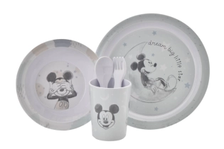 Maak elke maaltijd leuk met deze Disney Mickey eetset! De set bestaat uit een bord, kom, beker, vork en lepel, allemaal versierd met de iconische Mickey Mouse. Dankzij het vrolijke design en de stevige materialen is deze eetset perfect voor dagelijks gebruik door kleine kinderen.