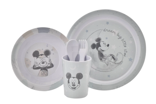 Het Mickey Mouse kinderservies ligt goed in kleine handjes en maakt zelfstandig eten een feestje. Of het nu gaat om ontbijt, lunch of diner – Mickey zorgt altijd voor een glimlach aan tafel. Ook leuk om cadeau te geven bij een geboorte, verjaardag of als praktische toevoeging aan de babyuitzet.