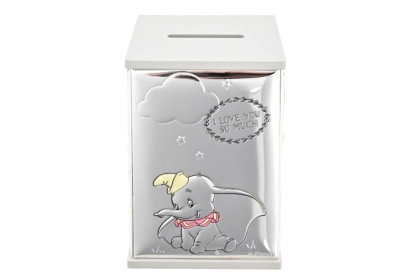 Deze charmante zilverkleurige spaarpot brengt de geliefde Dumbo uit de klassieke Disney-film op een subtiele en elegante manier tot leven. Met zijn zachte vormen en prachtige metallic afwerking is dit item niet alleen functioneel, maar ook een prachtig decorstuk voor elke kinderkamer, woonkamer of ruimte waar je een vleugje magie wilt toevoegen.