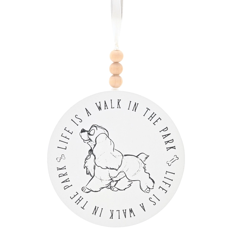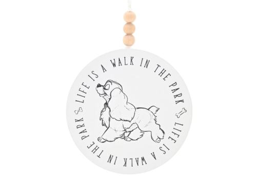 Breng warmte en nostalgie in huis met deze charmante ronde houten wand-plaque waarop Lady uit Disney’s Lady and the Tramp te zien is bij de tekst “Life is a Walk in the Park”. Een vrolijk en liefdevol detail dat perfect past in elke woonruimte, hal of kinderkamer.