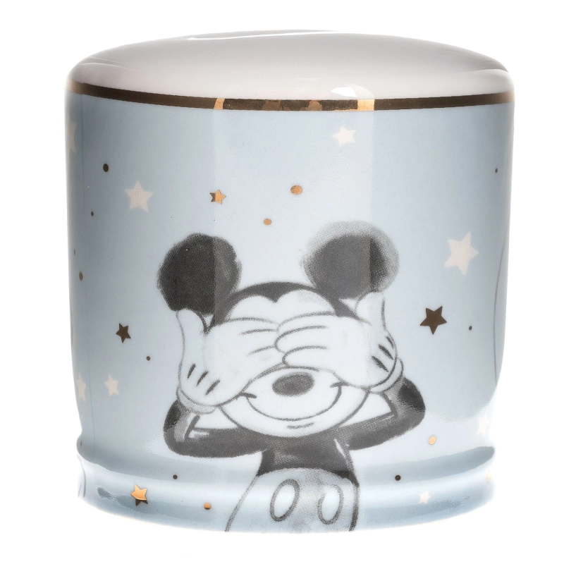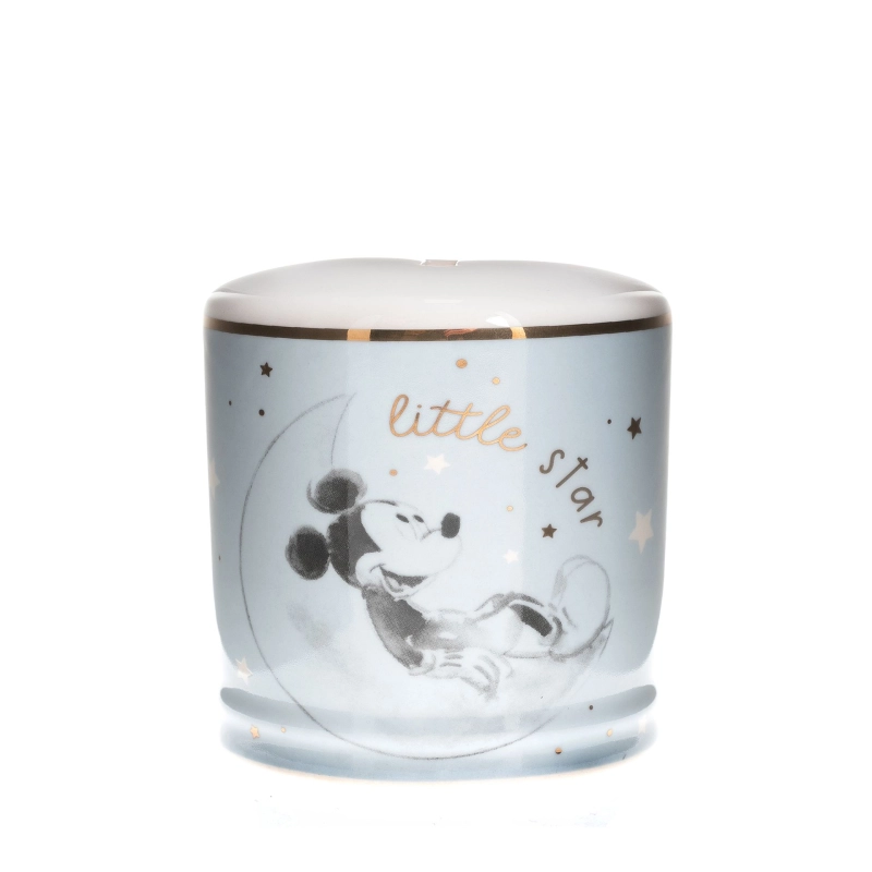 De spaarpot is vervaardigd uit keramiek van hoge kwaliteit en heeft een schattige illustratie van Mickey met de tekst "Little Star". Dankzij de zachte pastelkleuren past hij perfect bij elk interieur in baby- of kinderkamers.