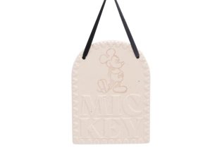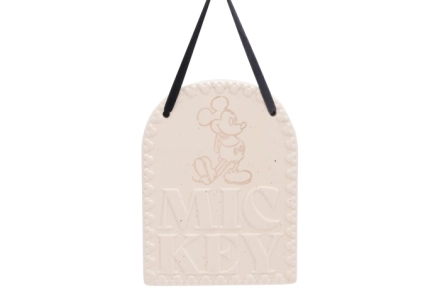 • Wit keramiek met speckled afwerking en zwart lint om op te hangen – ideaal voor Disney-fans.