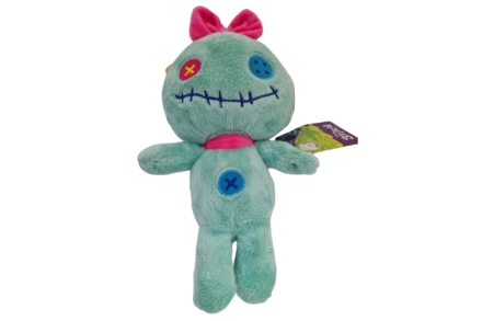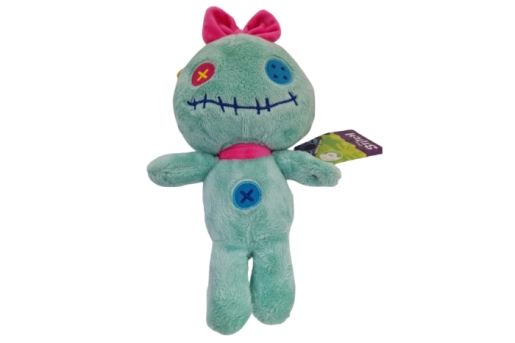 Maak kennis met Scrump, het schattige popje dat Lilo zelf heeft gemaakt in Disney’s Lilo & Stitch. Deze Scrump knuffel van ongeveer 25 cm is net zo aandoenlijk als in de film, met zijn kleurrijke knoopogen, roze strik en zachte mintgroene pluche. Een uniek en speels figuurtje dat meteen opvalt door zijn charmante, eigenwijze uitstraling.