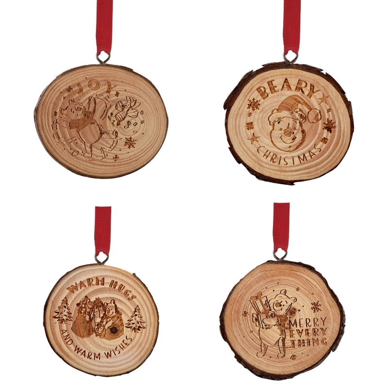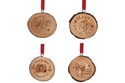 Voeg warme Disney-magie toe aan je kerstboom of winterdecoratie met deze set van vier houten kerstdecoraties rondom Winnie the Pooh. Het rustieke ontwerp met houtlook maakt ze direct geschikt voor een sfeervolle, gezellige uitstraling.