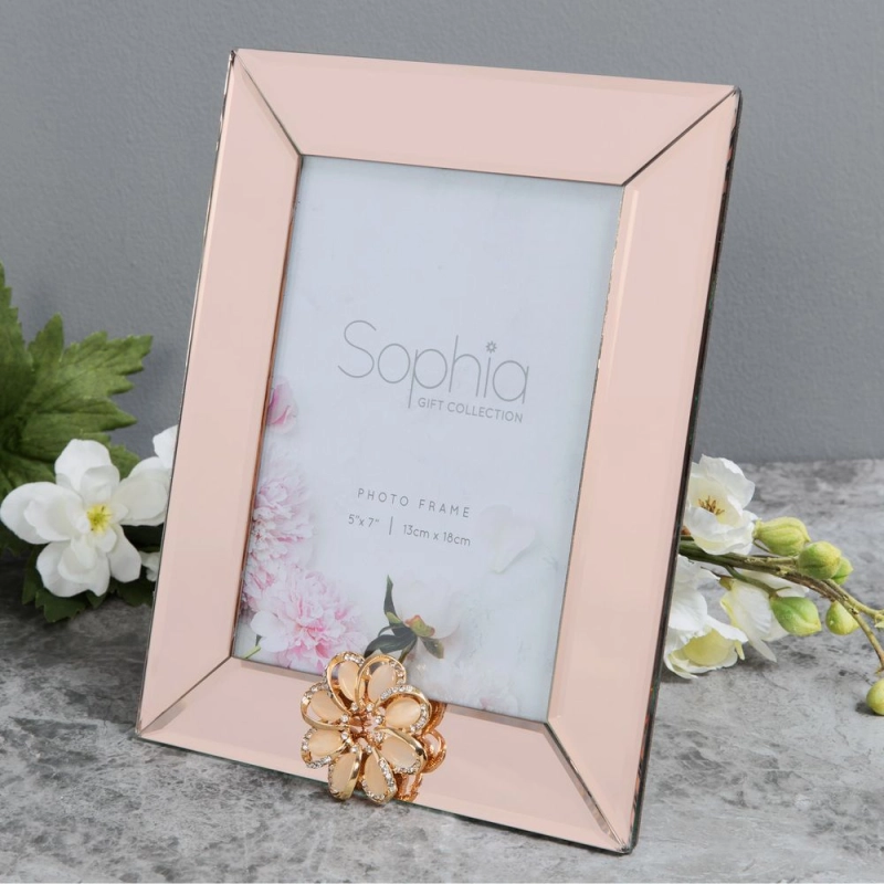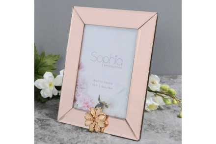 Geef een mooie foto een mooi huis met deze stralende fotolijst van 12 x 17 cm met diafragmaopening met luxe champagne-spiegelafwerking en met kristallen verfraaid goudkleurig metalen bloemdetail. Compleet met in zwart fluwelen gewikkelde staande steun.