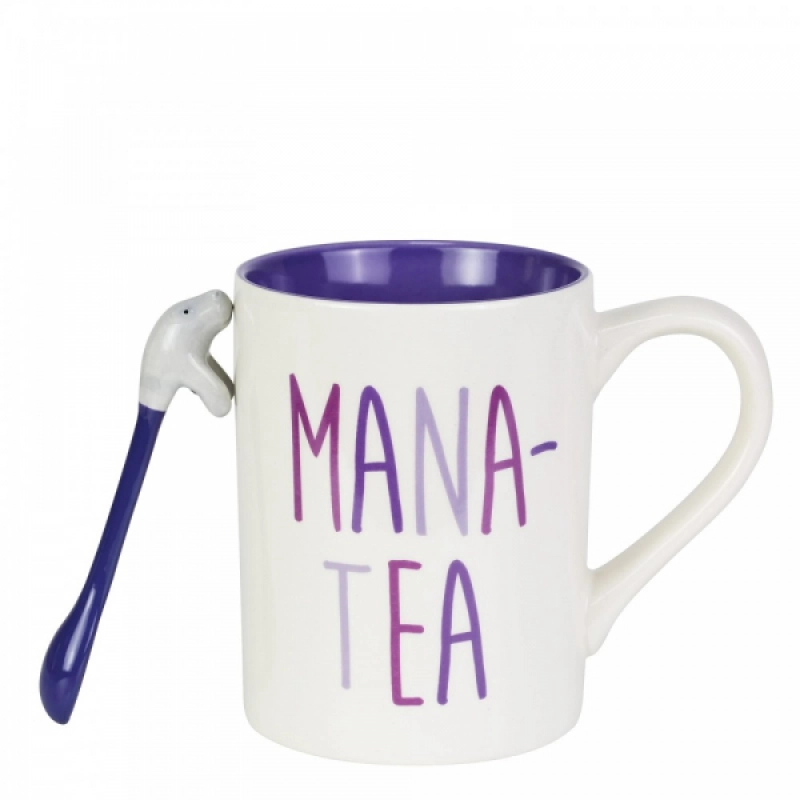 Geniet van een hete cuppa in je favoriete mana-theemok, compleet met bijpassende lepel.