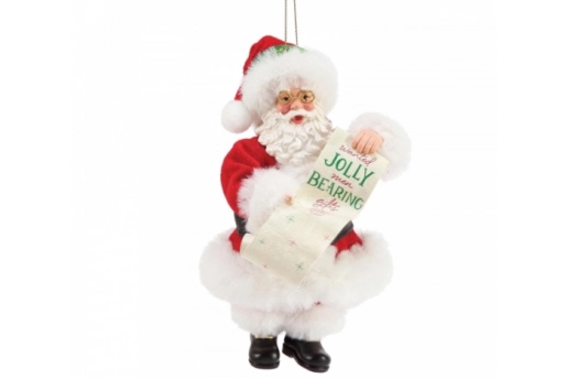 Dit hangende ornament van Clothtique legt de klassieke kerstman op zijn best vast. Op maat gemaakt en voorzien van een lange lijst met het opschrift "Wanted Jolly Men Bearing Gifts", die ook gepersonaliseerd kan worden.