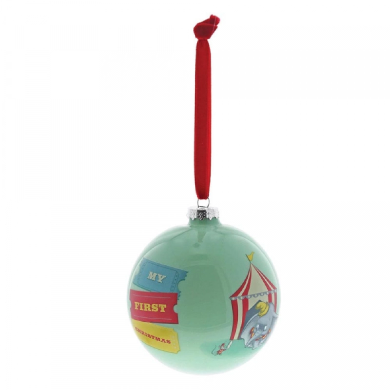 Vier de allereerste kerst van je kleintje met deze ontroerende Dumbo kerstbal uit de Disney Magical Beginnings collectie. Het ornament toont de schattige babyolifant Dumbo met de tekst “My First Christmas” in een elegant lettertype, omringd door subtiele sterretjes en zachte pastelkleuren.