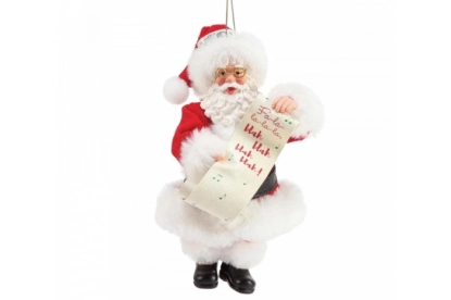 Dit hangende ornament van Clothtique legt de kerstman vast aan het einde van een lange dag. Op maat gemaakt en voorzien van een lange lijst met het opschrift "Fa-la-la-la ... blah, blah, blah, blah", die ook gepersonaliseerd kan worden.