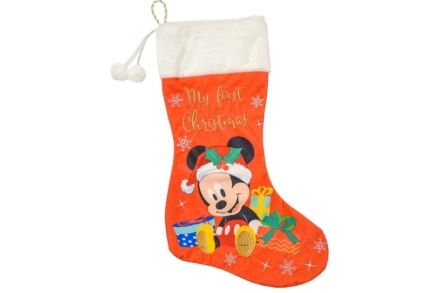 Vier een onvergetelijke eerste kerst met deze Disney kerstsok van Mickey Mouse. De lieve sok is versierd met een vrolijke afbeelding van Mickey en de geborduurde tekst “My First Christmas” – ideaal voor baby’s eerste feestdagen.