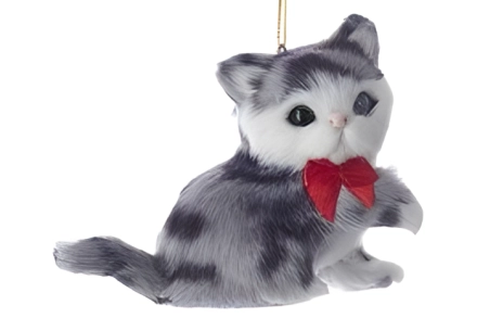 Dit ornament van plunche kwaliteit met rode strik is het cadeau voor iedere kattenliefhebber.