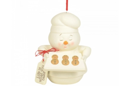 Een van de beste tradities van de feestdagen is het bakken van koekjes. Deze sneeuwman met chef-kok heeft een draai gegeven aan traditionele peperkoekmannen in dit aangename ornament. Drie verse peperkoeksneeuwmannen wachten tot ze opgegeten zijn.