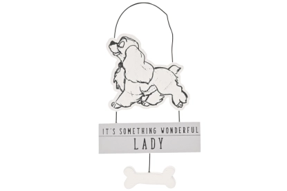 Deze charmante kleine wandplaque uit de Cats & Dogs-lijn brengt de klassieke liefde en elegantie van Lady & The Tramp subtiel tot leven. De plaque draagt de tekst “It's Something Wonderful, Lady” — een warme knipoog naar het iconische Disney-verhaal — en is een perfecte toevoeging aan hal, gang, woonkamer of knus hoekje in huis.